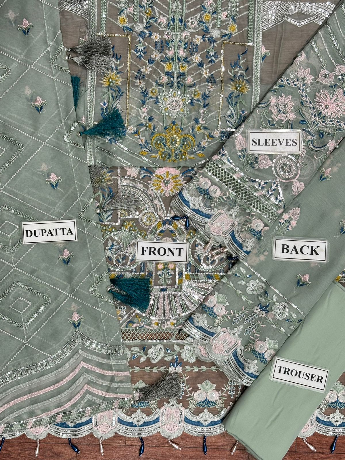 ▪️Fully Heavy Embroidery Chiffon Front With pearls Work