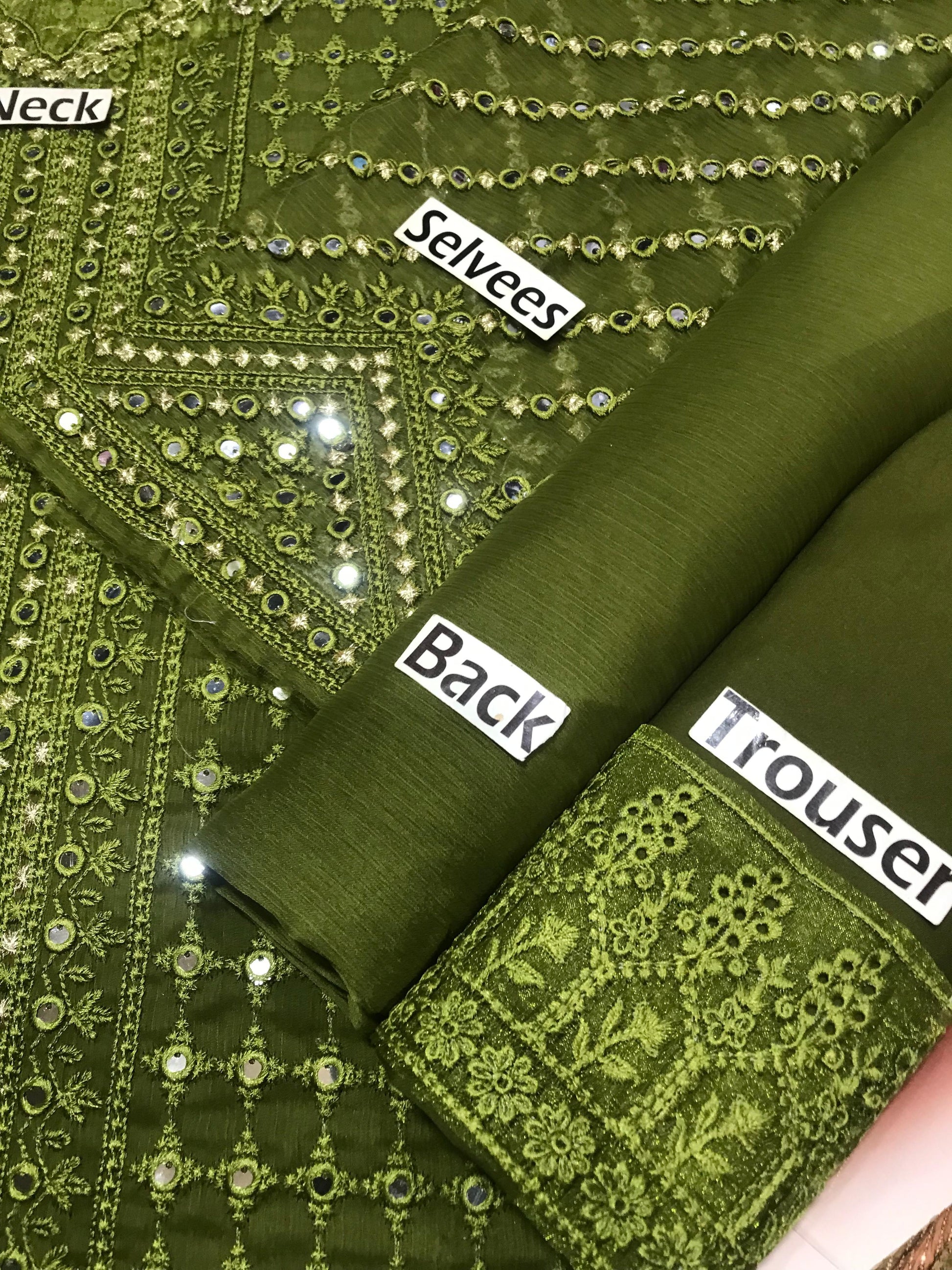 ▪️Fully Heavy Embroidery Chiffon Front with 9mm Sequence Work