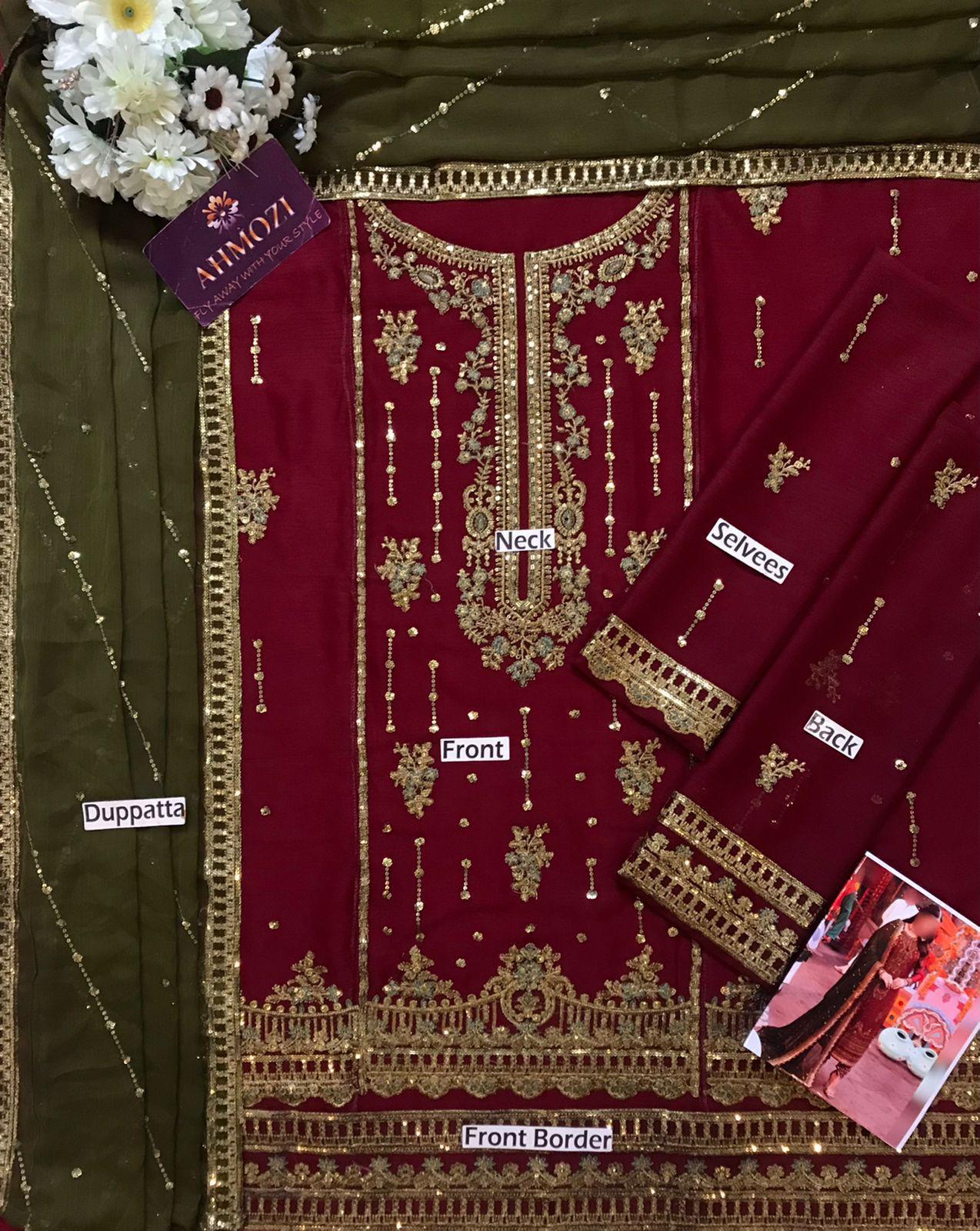 ▪️Heavy Embroidery Chiffon Back  with Back Border On Fabric