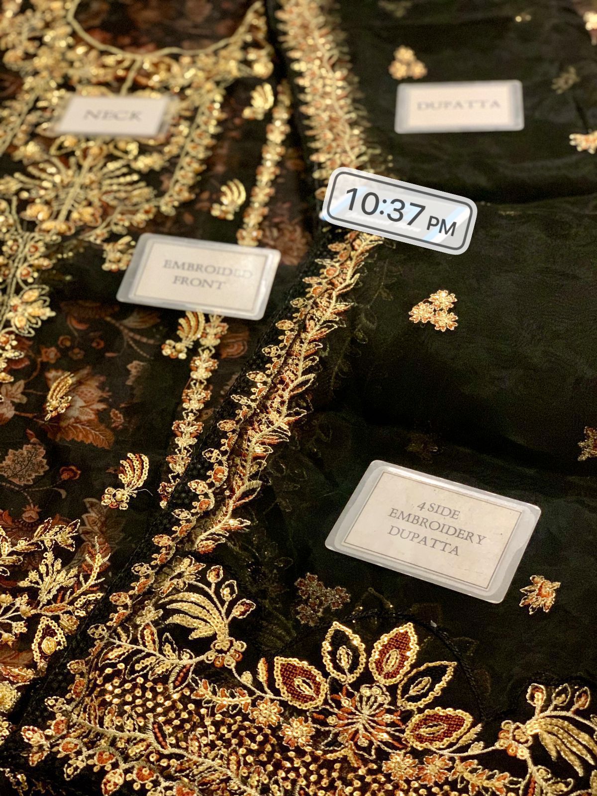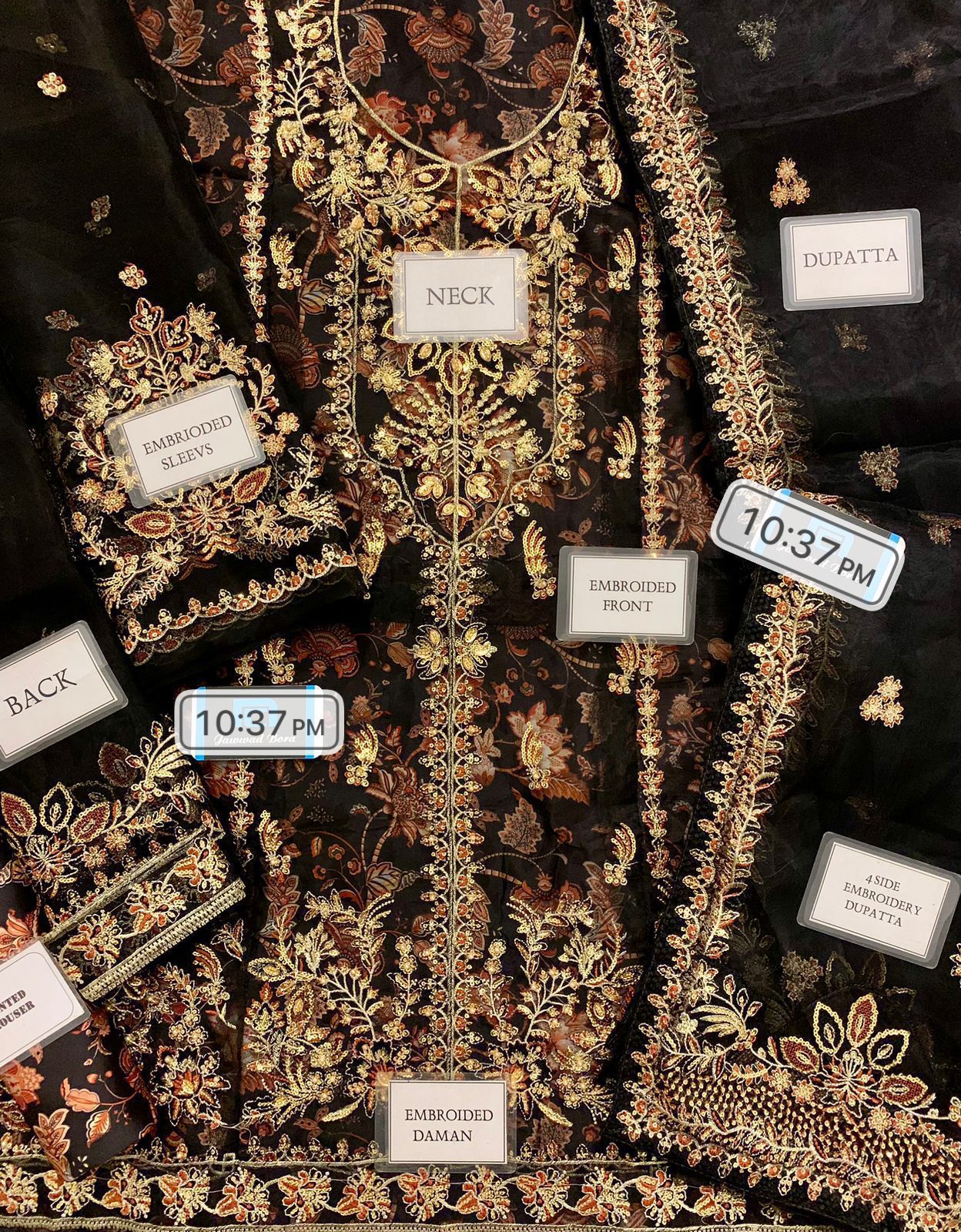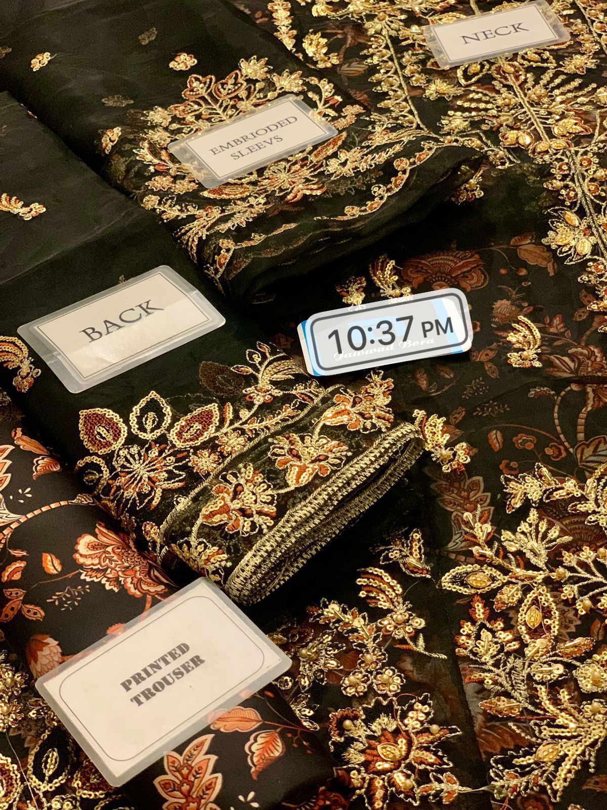 organze fully embroidered spengle work back with embroidered spengle work back daman boarder
