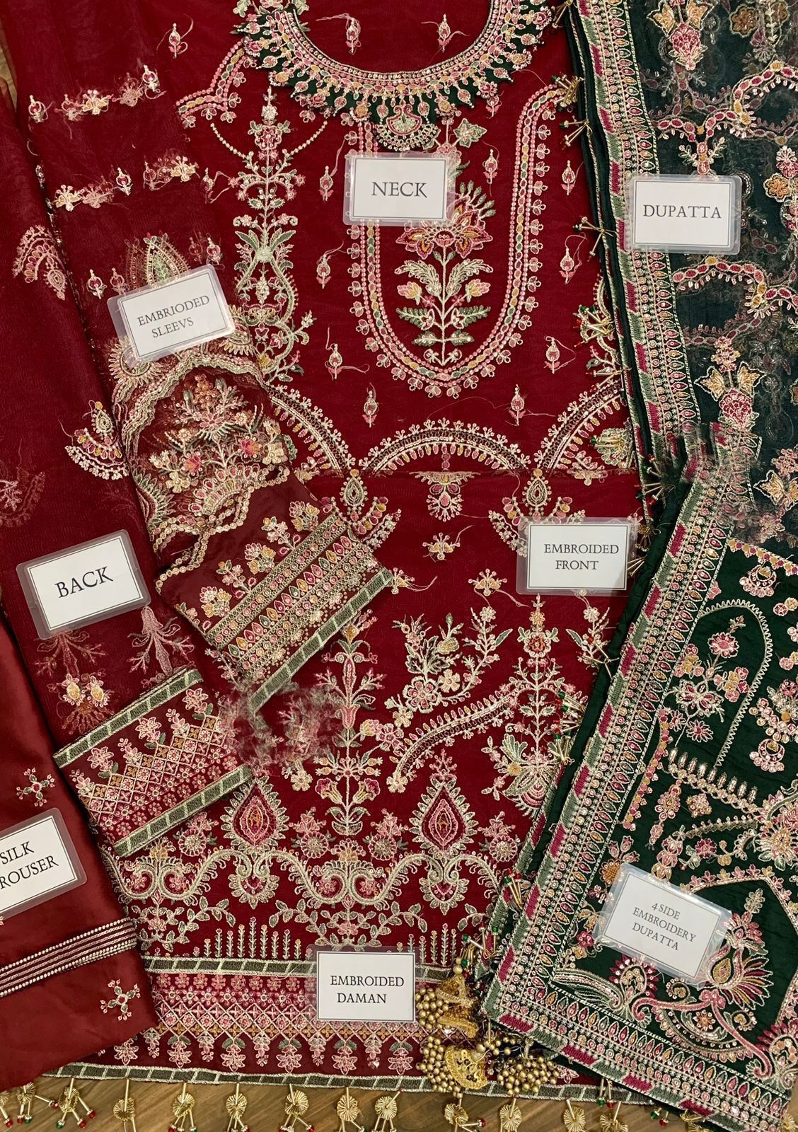 net fully heavy embroidered spengle work front with heavy embroidered spengle work neck with heavy embroidered spengle work daman boarder with fully heavy fancy tulses attach