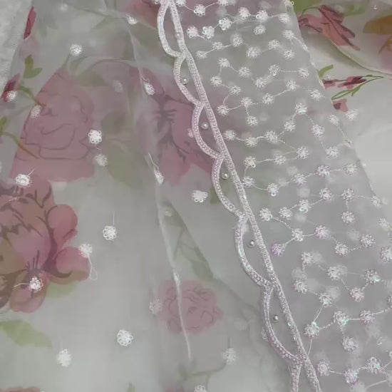 DUPATTA HEAVY EMBROIDERED WITH CUTWORK BORDERS DIGITAL PRINTED ORGANZA