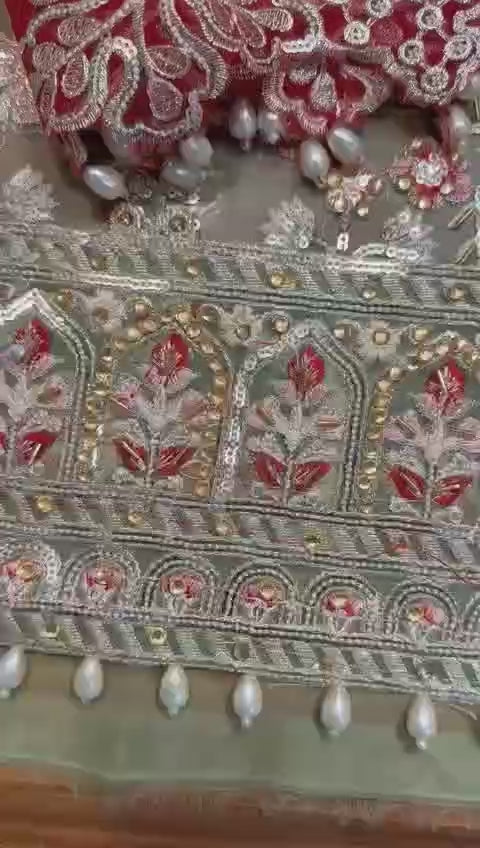 โขDIGITAL PRINTED DUPATTA WITH FOUR SIDE FOIL EMBROIDERED BORDER AND IN CENTER TAILORING GOLDEN GOTA LACE WHICH LOOK ๐ LIKE SAME AS ORIGINAL AND ALSO INCLUDED HEAVY TASSEL ready to wear