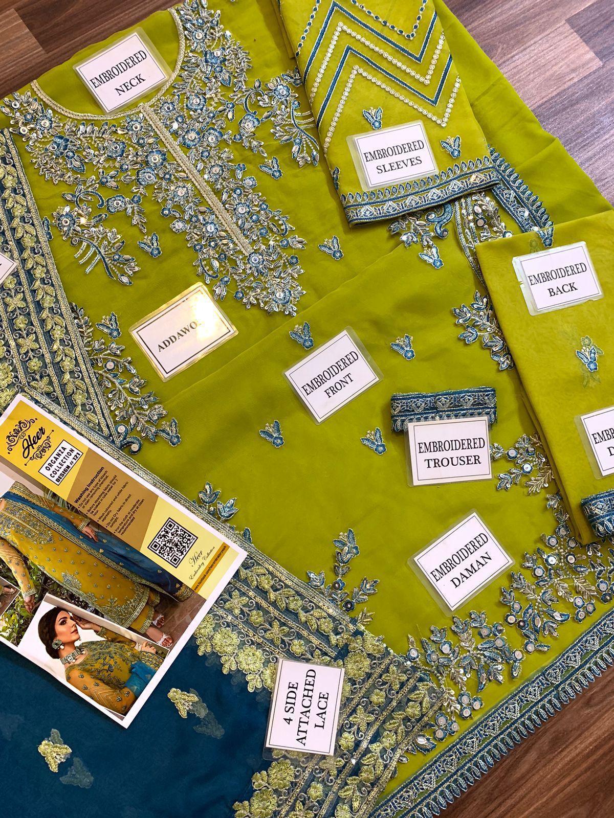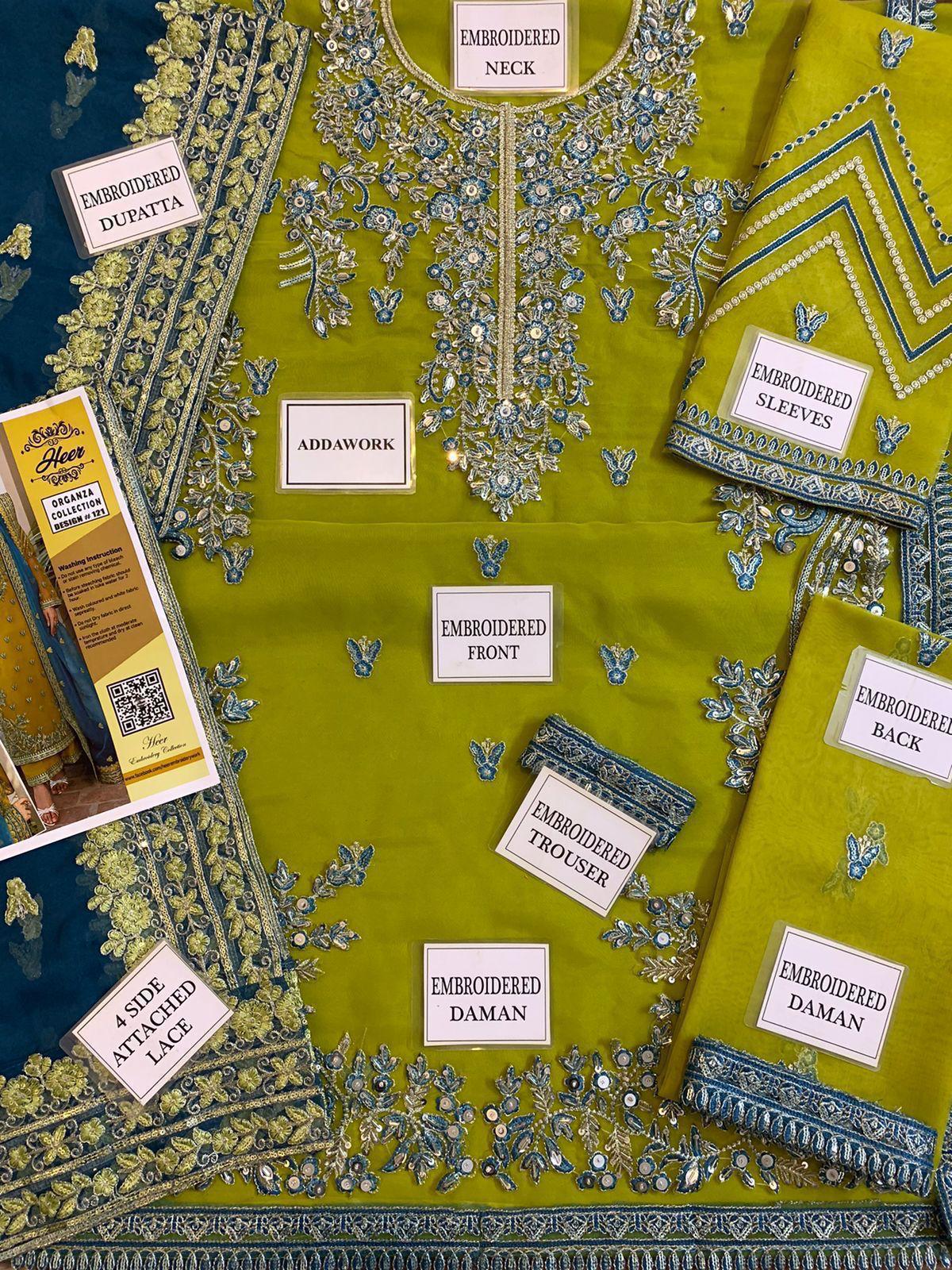 •Neck Embroidered Motif On Fabric with Heavily Adda🤚work