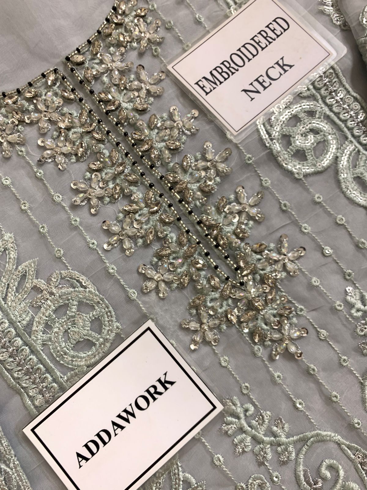 •Neck Heavy Embroidered Motif on Fabric with Heavy Adda🤚work