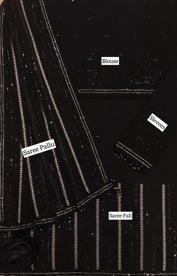 Full Heavy Embroidered Saree Pallu With punch pearls Work and Hanging Tuselss