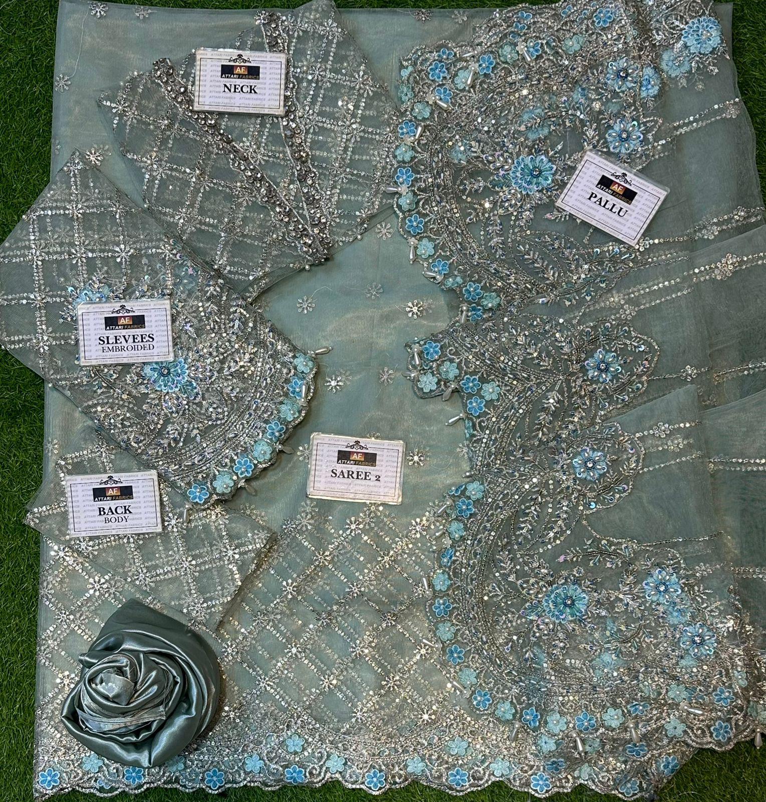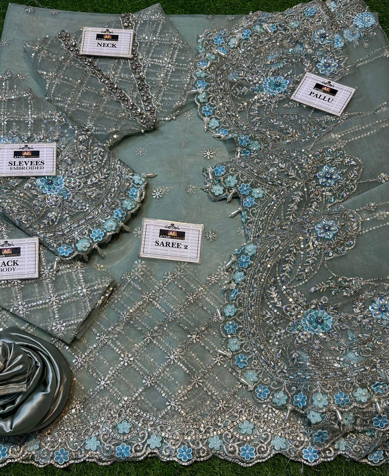 Heavy Embroidered Net Selvees With Heavy Adda Work With Cut Work selvees Cuff and Hanging Tuselss