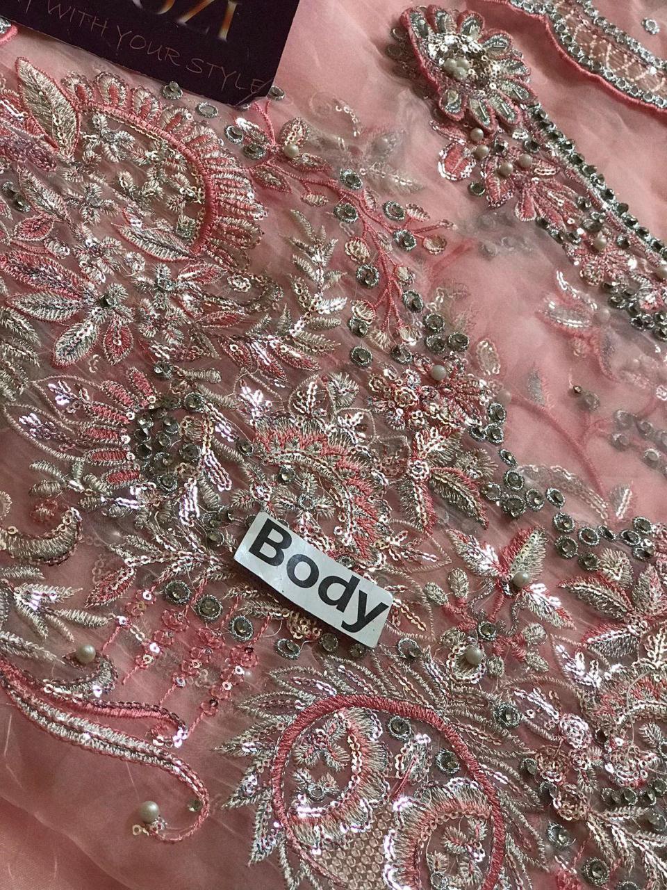 ▪️Heavy Embroidered organza body With hand work and 3D flower Work
