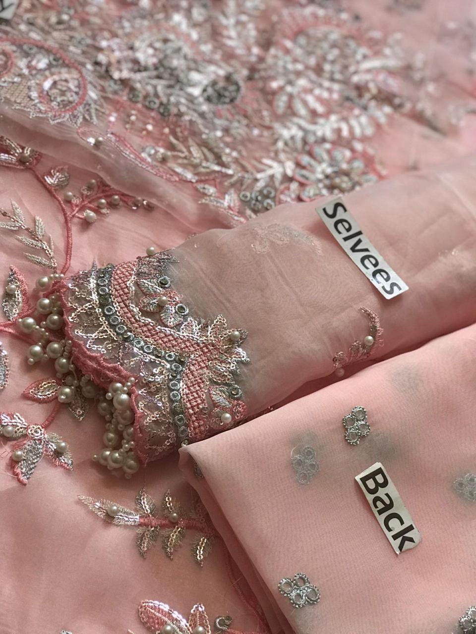 ▪️Fully Heavy Embroidered Organza Front with hand work and 3d Flower Work 50 Inches Length