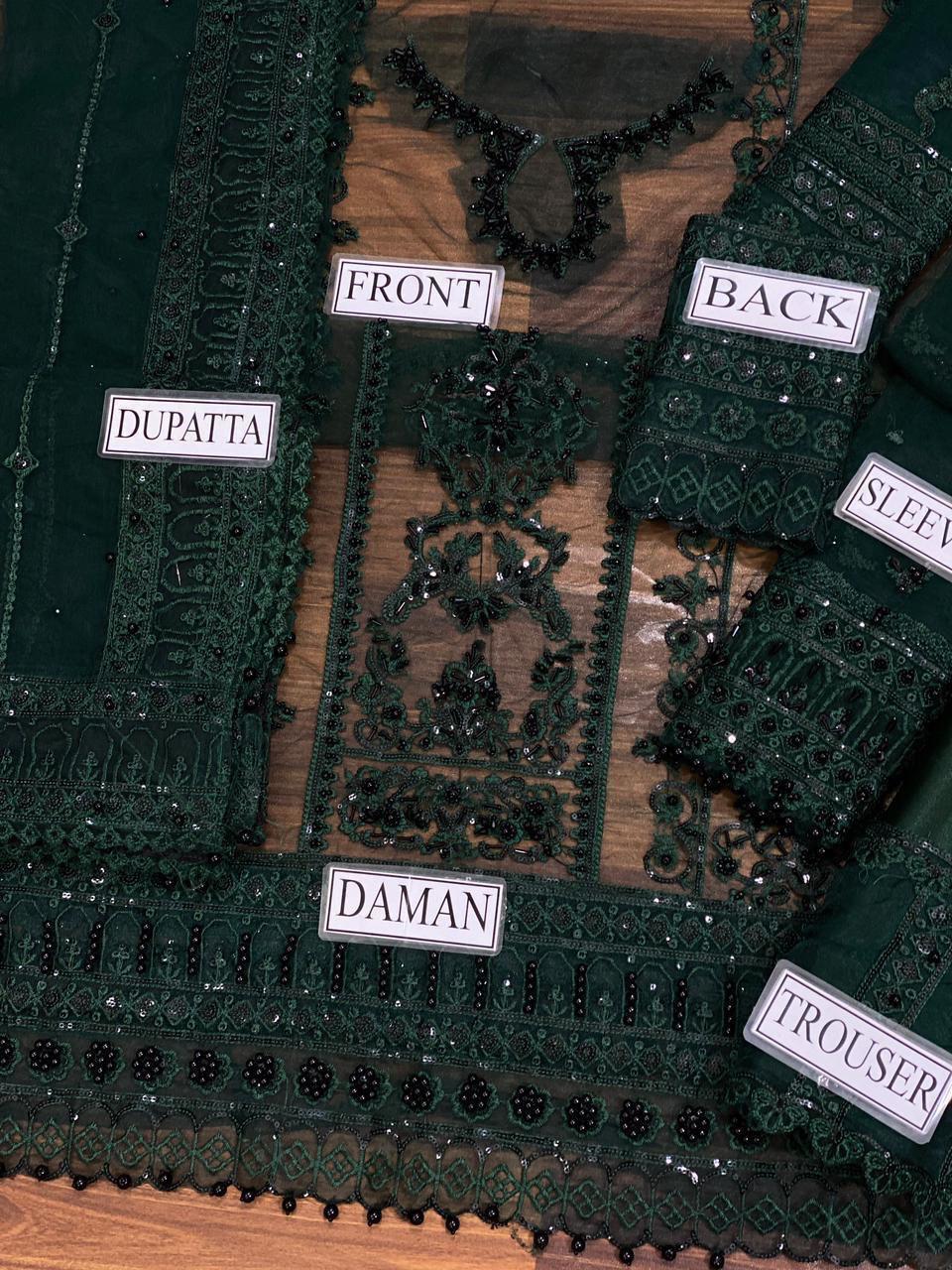 FRONT DAMAN embroidery on organza with beautiful tussules Attached