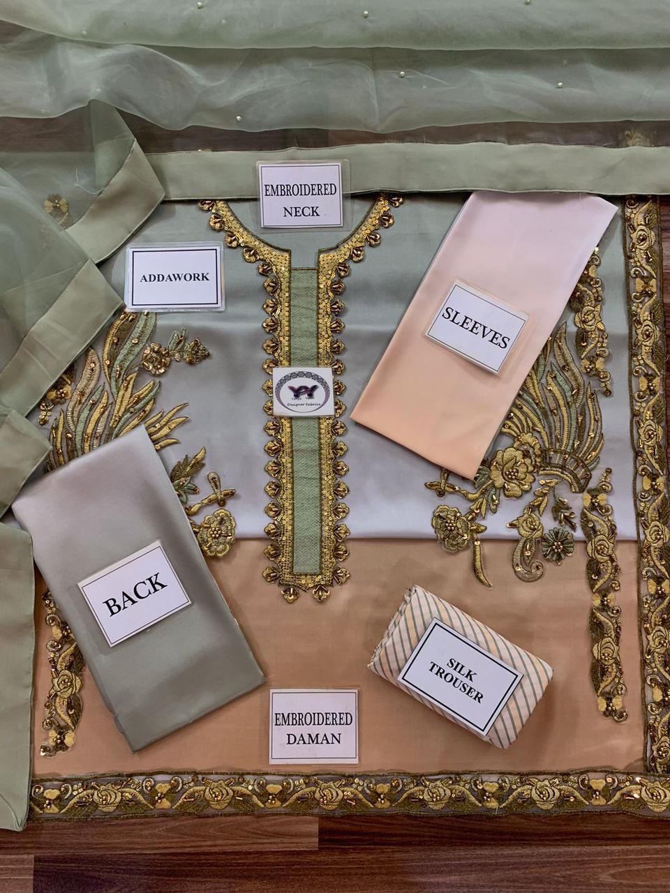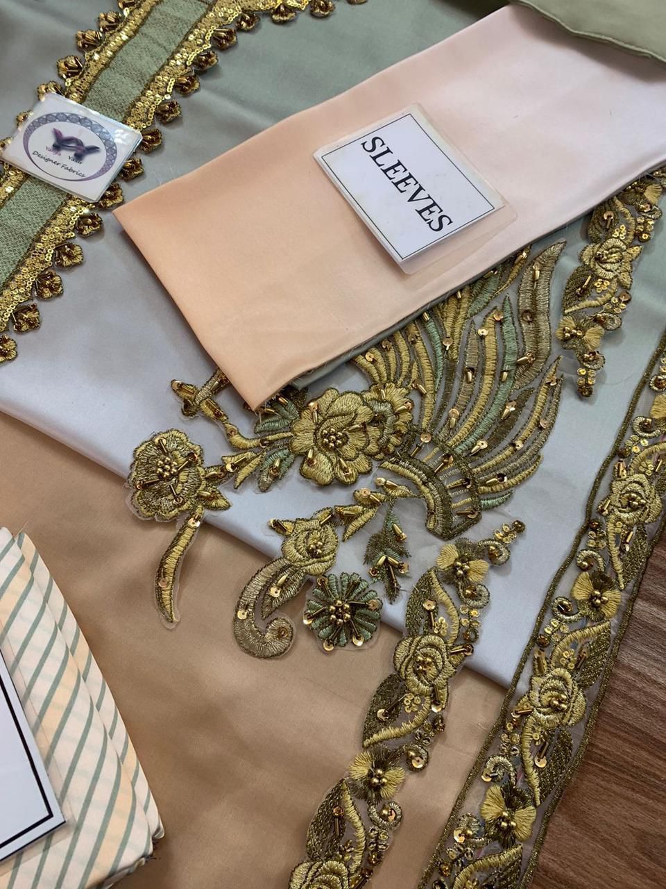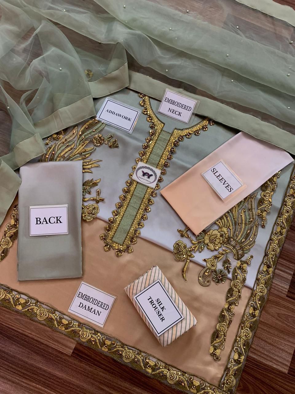ORGANZA DIED DUPATTA EMBELISH WITH PEARLS ATTACHED ALONG WITH 4SIDE ASSEMBELED APPLIQUE DUPATTA