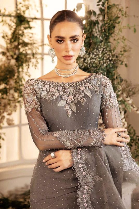 BRAND:MARIA.B net saree embroidered sequence hand embellished luxury unstitched